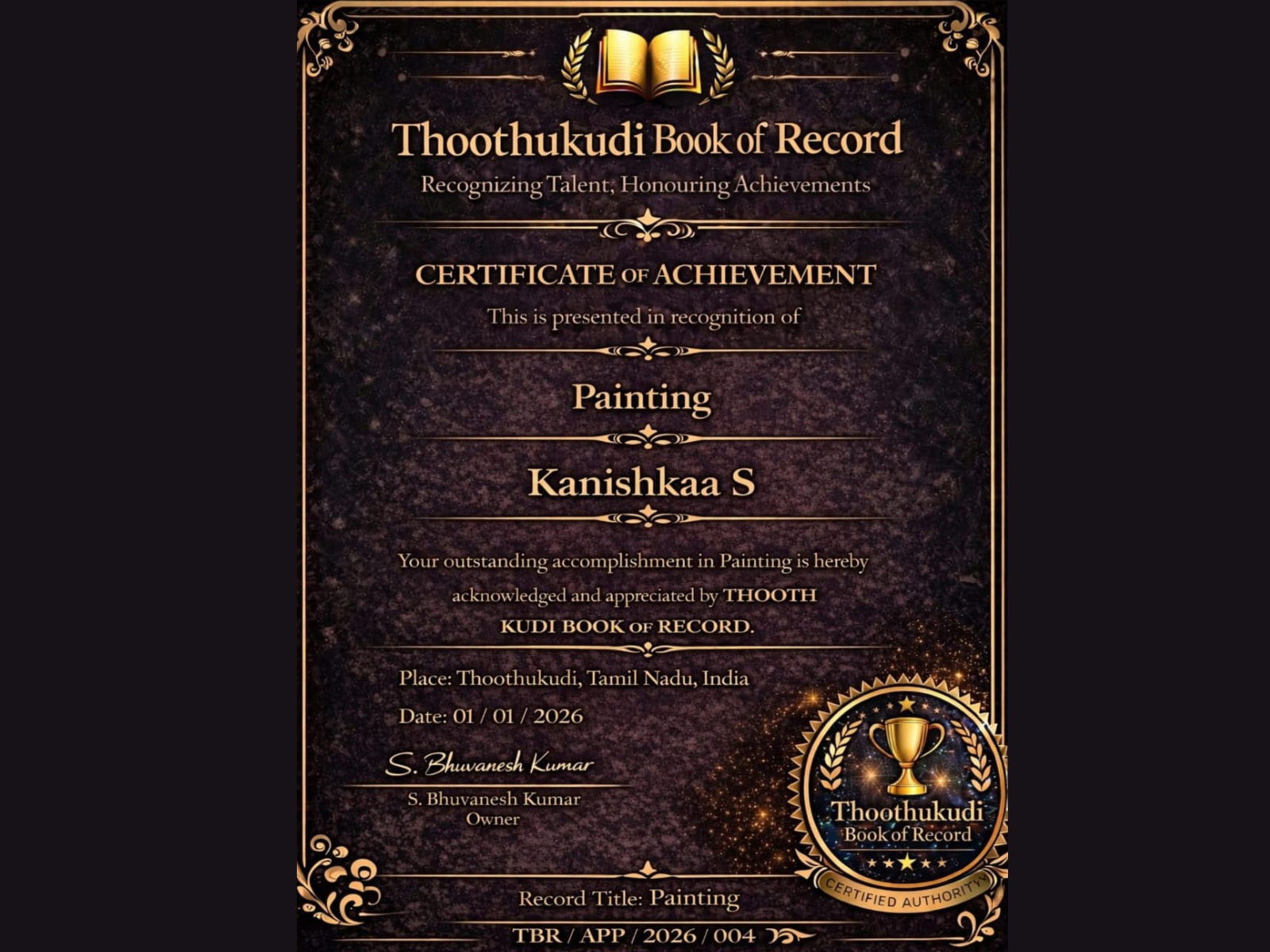 The Students in our school are encouraged to get trained and participate in local, State and National level competition.